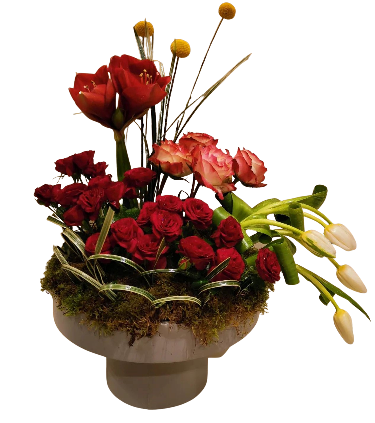 Amryllis,Baby Rose,Rose,Green Moss,Leaves