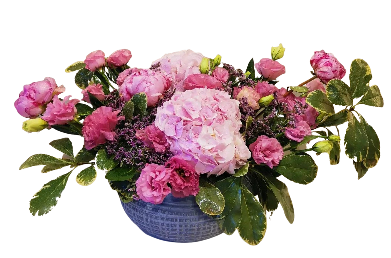 Hydrangea, Peony, Limonium, Eustoma, Green quantity
