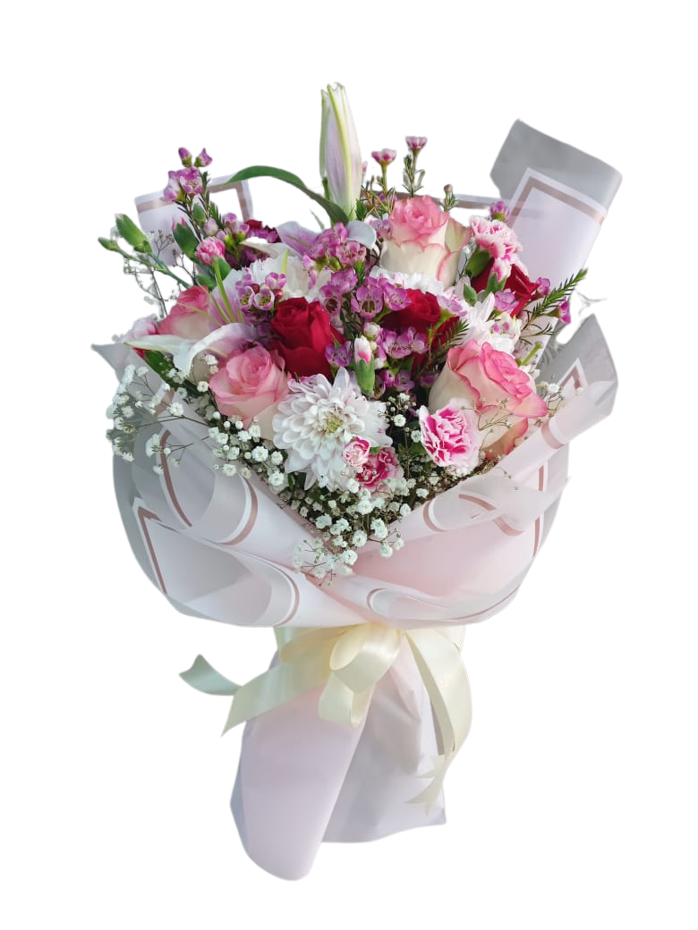lilly,Alstromeria,Carnation,Baby rose,Gypso,Green